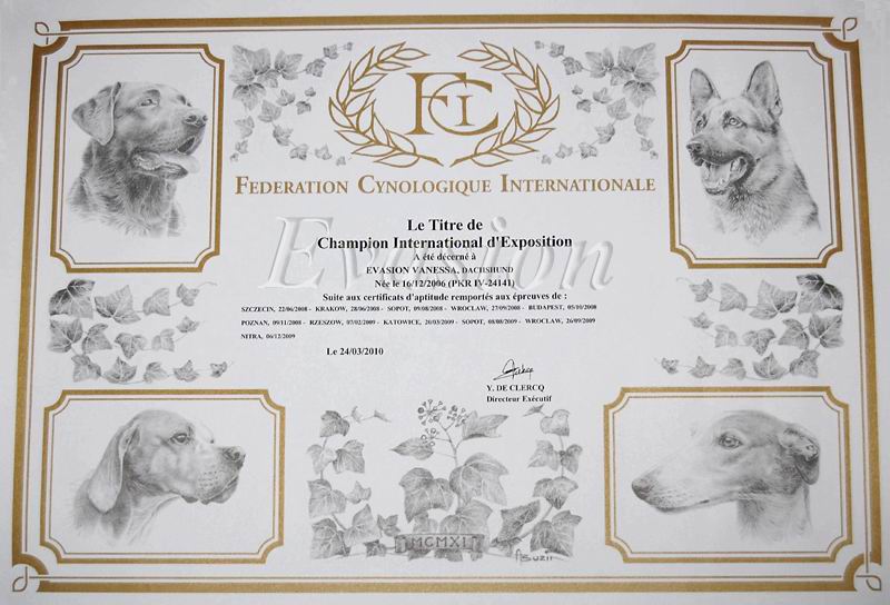 potwierdzający tutuł Międzynarodowego Championa Wystawowego